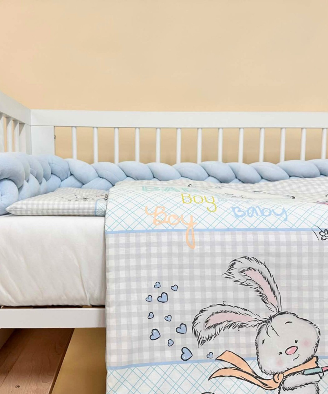 Naziv proizvoda: Textil komplet posteljina za krevetac za bebe Plavi Zeka - 120x60 cm