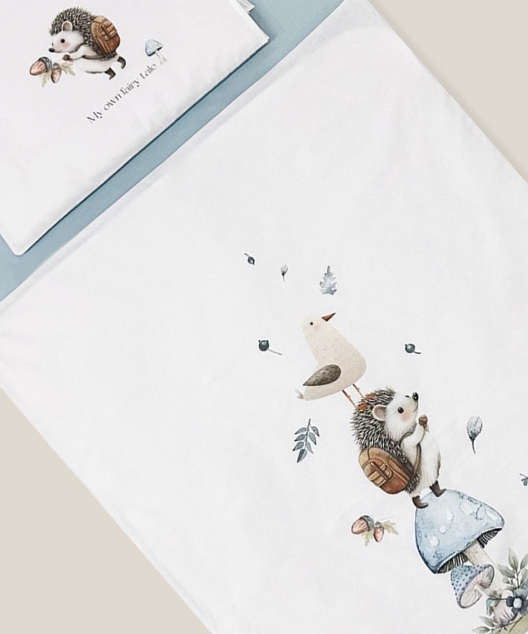 Motiv ježa u nežnim tonovima unosi toplinu u bebinu sobu, dok prirodni materijali osiguravaju mekoću i prozračnost potrebnu za miran san. Set je praktičan za svakodnevnu upotrebu i jednostavan za održavanje.