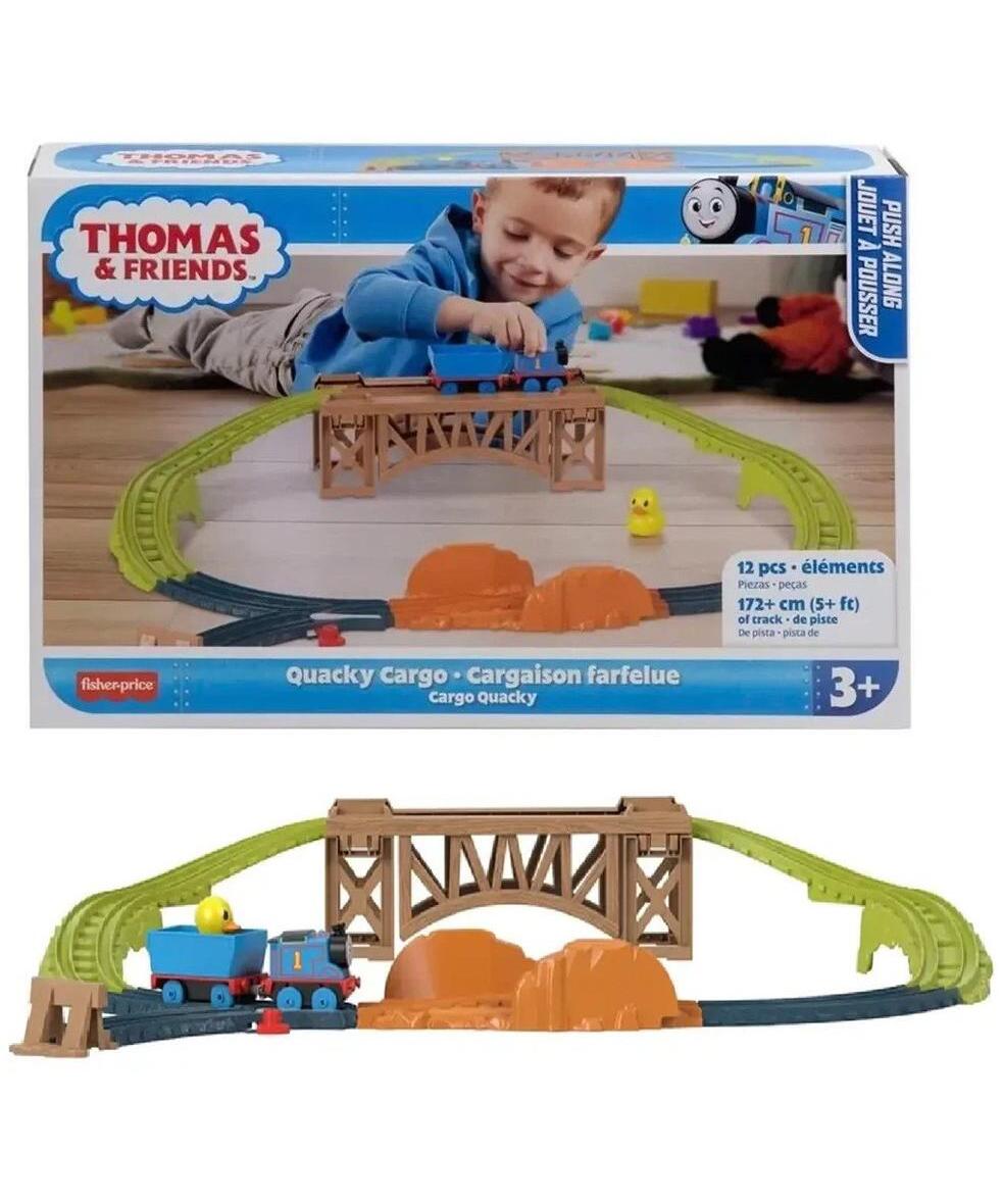 Set uključuje stazu dugu 120 cm, voz za guranje i lako povezive delove pruge i tereta.
