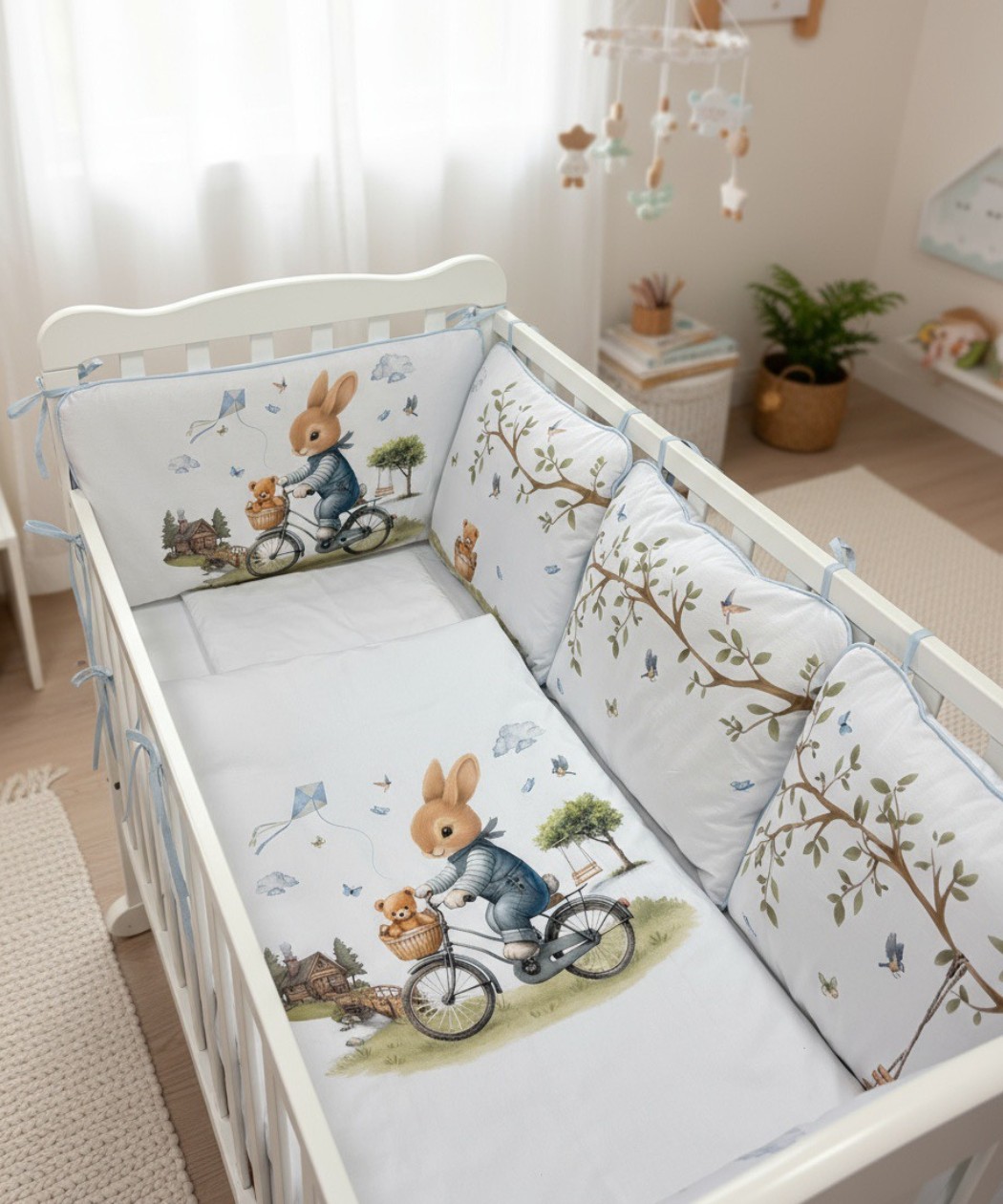 Opis proizvoda: - Punjena posteljina sa ogradicom za bebe - Izrađena 100% od pamuka - Punilo od 350 gr/m2 100% PES - Sadrzi ogradice za tri strane krevetca - Punjeni prekrivač, punilo 200gr/m2 100% PES - Navlaku za isti taj prekrivač sa rajsfešlusom - Jastuče za spavanje punjeno sa 150 gr/m2 - Ukrasno jastuče - Donji čaršaf sa lastišom - Posteljina je sa vezom na prekrivaču i ogradici - Odgovara unutršnjim dimenzijama krevetca 120×60 cm - Izrađena od mekog, prijatnog pamuka vrhunskog kvaliteta, prilagođenog potrebama bebe