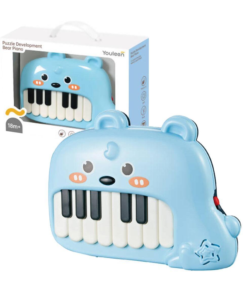 Dečiji klavir sa motivom plavog mede osmišljen je tako da kroz igru inspiriše decu da stvaraju svoje prve melodije.